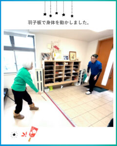 羽子板で身体を動かしたり、